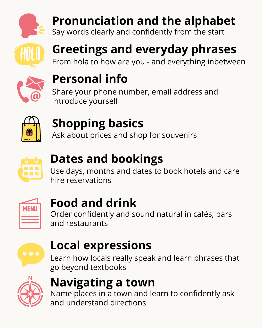 ✔ Use Spanish on holiday, with family, or just for fun