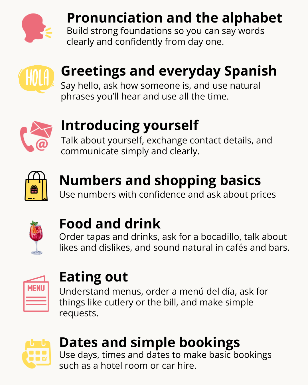 ✔ Use Spanish on holiday, with family, or just for fun